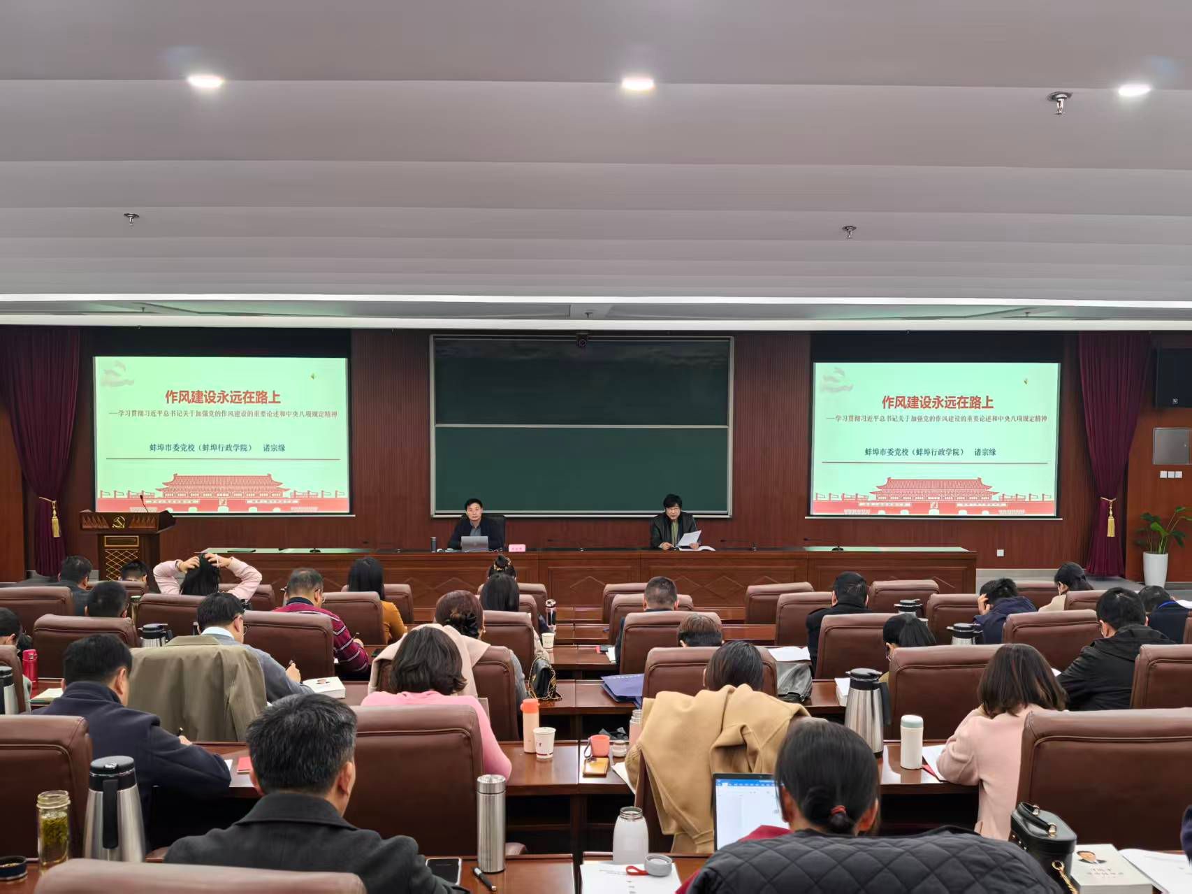 11月29日-11月30日,培训班在蚌埠市委党校举行。蚌埠市委党校副校长褚宗缘等4名专家围绕党的二十届四中全会精神、作风建设和中央八项规定精神、中国共产党章程、中国共产党纪律处分条例等分别作专题辅导报告。